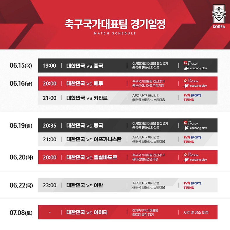 6월 22일 목요일에 있을 U-17 아시안 컵 대한민국 대 이란 경기에서는 좋은 소식이 있기를 기대해보아야 겠습니다.