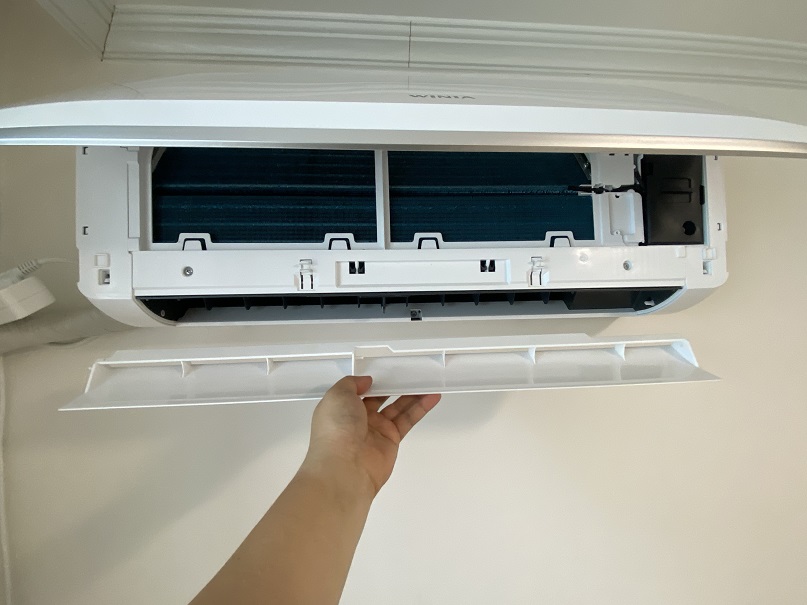 여기까지 완료하셨다면 처음에 제거했던 필터를 다시 장착해 주시고 아직도 세정액이 튈 수 있으니 비닐로 간단하게라도 작업해 준 뒤 에어컨을 가동해 줍니다. 일단 가장 낮은 온도로 1시간 정도 가동해 준 뒤, 2시간 정도 송풍으로 말려주면 모든 과정에 완료됩니다. 완료한 뒤에 에어컨을 사용해 보시면 정말 달라진 냄새를 느끼실 수 있습니다.