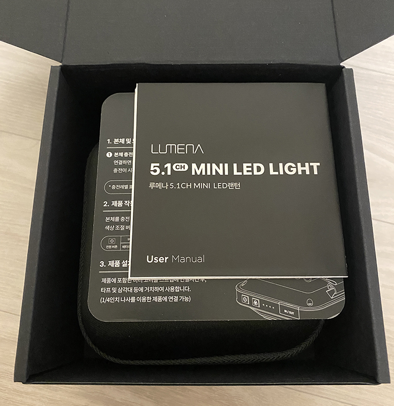 일단 저는 전체적으로 무광검정과 동글동글한 느낌이 좋아서 루메나 5.1ch 미니를 구매하게 됐기에 실물을 보고 만족감이 매우 좋았습니다. 물론 조명이라는 것이 디자인, 감성도 중요하지만 밝기가 적당한지가 가장 중요하기 때문에 본인의 캠핑 스타일에 맞춰서 구매하시기를 권장 합니다. 저와 같이 오토캠핑장을 자주 다니시는 분들이라면 루메나 5.1ch 미니의 밝기가 가장 적당하지 않을까 생각됩니다.